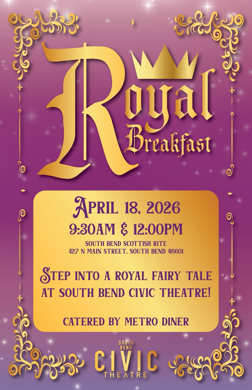 Step into a royal fairy tale with South Bend Civic Theatre! Attend a magical Royal Breakfast fit for princes and princesses, where you’ll enjoy a delicious buffet of classic breakfast favorites in the company of beloved fairy tale royalty!